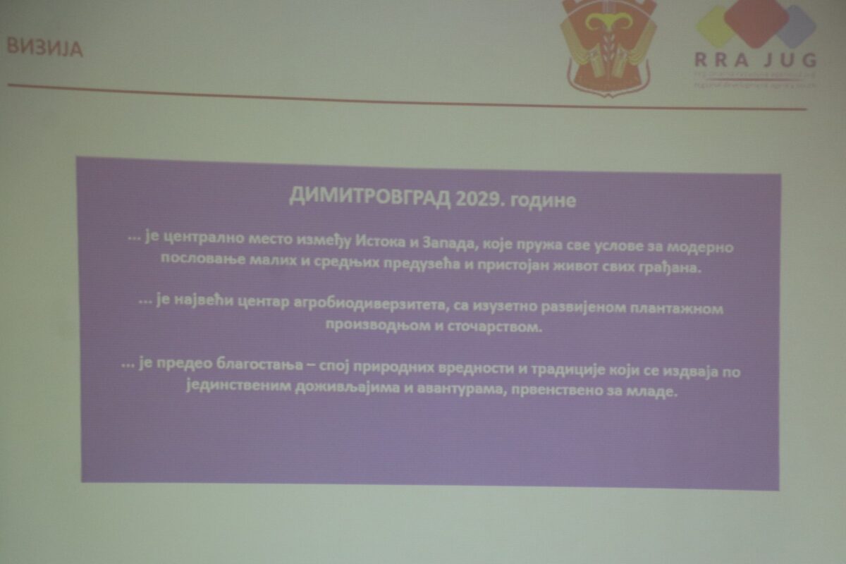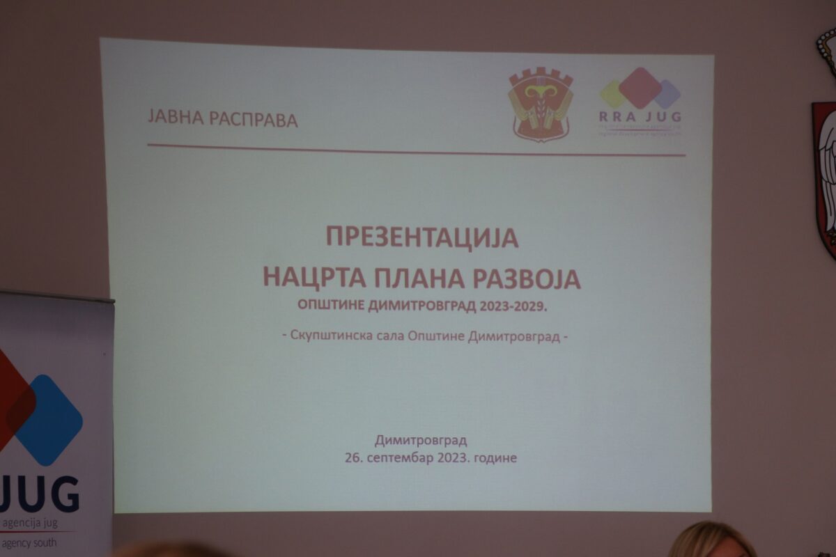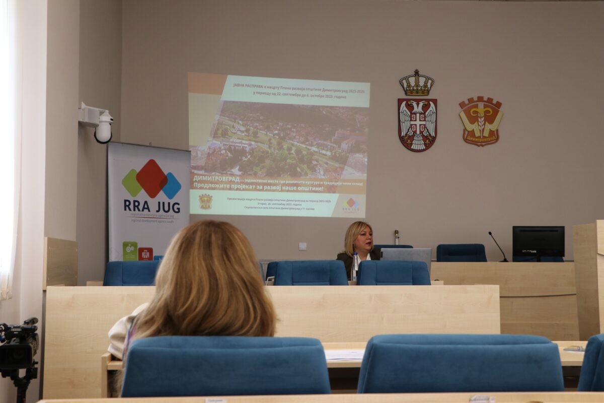 U Skupštinskoj sali Opštine Dimitrovgrad, u utorak 26. septembra 2023. godine održan je javni događaj – Prezentacija nacrta Plana razvoja opštine Dimitrovgrad 2023-2029, koji je imao za cilj da pruži priliku većem broju aktera iz lokalne zajednice da aktivno učestvuju i doprinesu ostvarivanju zajedničke vizije razvoja opštine.